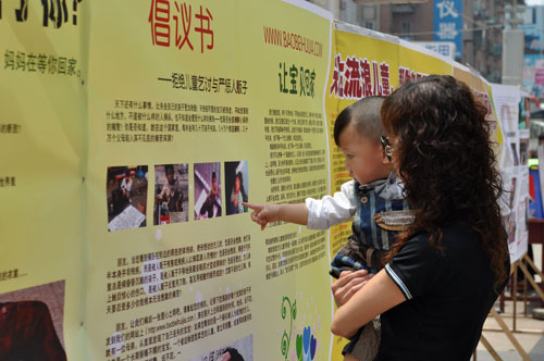5月31日,由國(guó)內(nèi)知名民間公益團(tuán)體-寶貝回家志愿者協(xié)會(huì)與新?lián)釁^(qū)婦幼保健站、市公安局巡特警支隊(duì)、西三街電腦城、英特企業(yè)在線等單位聯(lián)合舉辦的“關(guān)注流浪兒童,幫助寶貝回家!”大型公益活動(dòng)在西四路步行街舉行。參加活動(dòng)的志愿人員通過展板、發(fā)放宣傳單等形式向過往行人宣傳了打擊拐賣婦女兒童的有關(guān)知識(shí)和未成年兒童自我保護(hù)注意事項(xiàng);同時(shí)也提請(qǐng)居民在出行中遇到兒童乞討及發(fā)現(xiàn)有意虐待兒童行為及時(shí)向公安機(jī)關(guān)報(bào)案。記者在采訪中了解到,近年來,兒童失蹤案件屢有發(fā)生,大多被拐賣兒童成為了行乞人員的贏利工具,為了騙取同情,甚至有意傷害兒童肢體造成殘疾,對(duì)兒童父母造成極大傷害,產(chǎn)生惡劣的社會(huì)影響。志愿者號(hào)召大家行動(dòng)起來,配合公安機(jī)關(guān)及婦聯(lián)、民政等部門,堅(jiān)決打擊拐賣兒童犯罪,動(dòng)員全社會(huì)力量,幫助丟失的孩子找到自己的爸爸媽媽。志愿者高瑞杰對(duì)記者說:“一個(gè)人的力量雖然小,但是大家團(tuán)結(jié)起來,自覺關(guān)注流浪兒童,選擇適當(dāng)?shù)霓k法去幫助這些孩子,就會(huì)讓犯罪分子沒有利益可圖,最終無法繼續(xù)進(jìn)行犯罪活動(dòng)。”